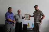 Вручение Свидетельства КАЗАПСМ "Заслуженому строителю Каз ССР" в честь его 80 летия Краснянскому В. Р.